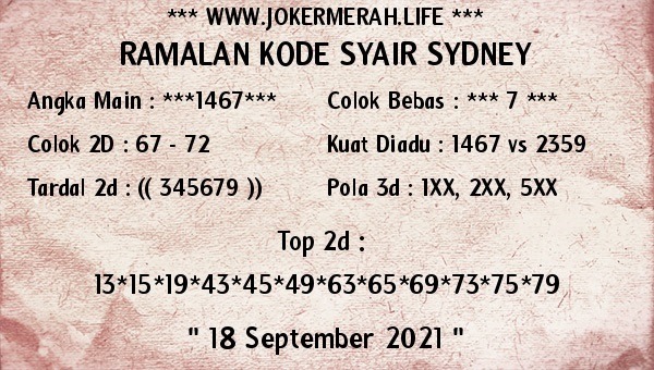 Syair Sdy Sabtu 18 September 2021