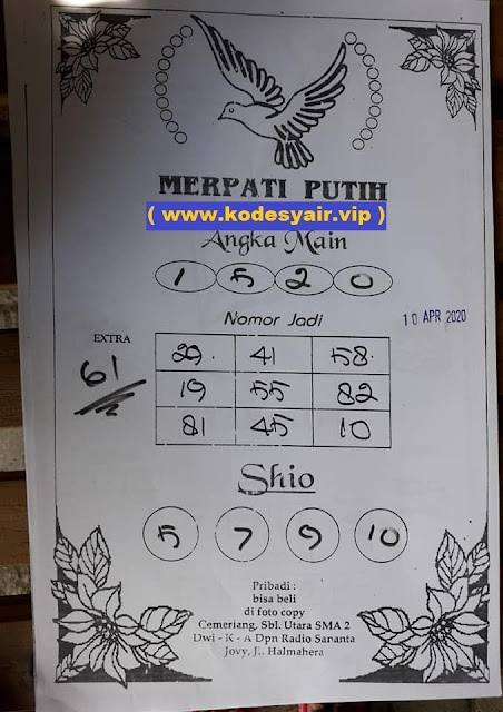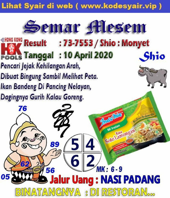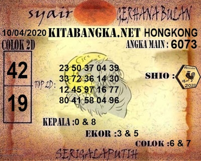 Kode Syair Hk Jumat 10 April 2020 meliputi prediksi togel hk serta forum syair Hongkong di lengkapi juga dengan data pengeluaran Hk 2020 .