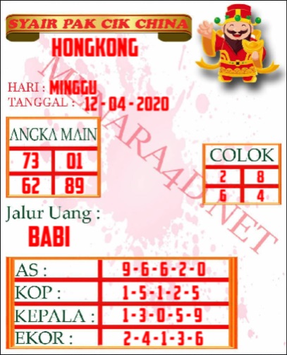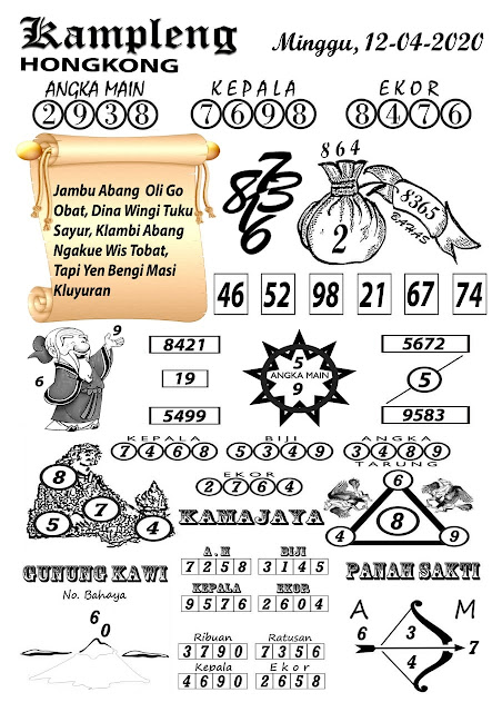 Kode Syair Hk Minggu 12 April 2020 meliputi prediksi togel hk serta forum syair Hongkong di lengkapi juga dengan data pengeluaran Hk 2020 .