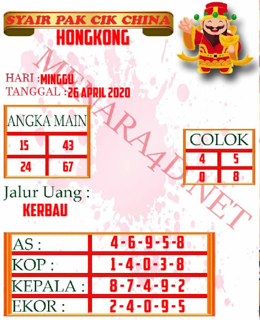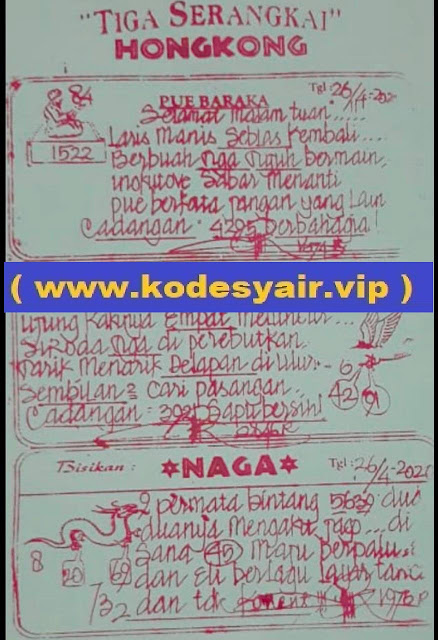 Kode Syair Hk Minggu 26 April 2020 meliputi forum syair Hongkong , paito warna hk serta prediksi togel hk dan di lengkapi juga dengan data pengeluaran Hk 2020 .