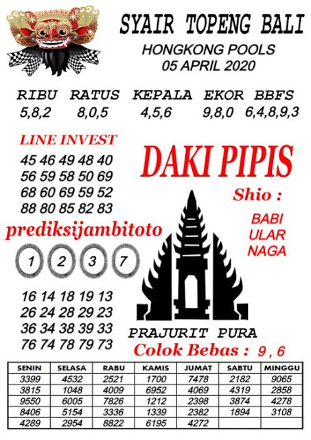 Kode Syair Hk Minggu 5 April 2020 meliputi prediksi togel hk serta forum syair Hongkong di lengkapi juga dengan data pengeluaran Hk 2020 .