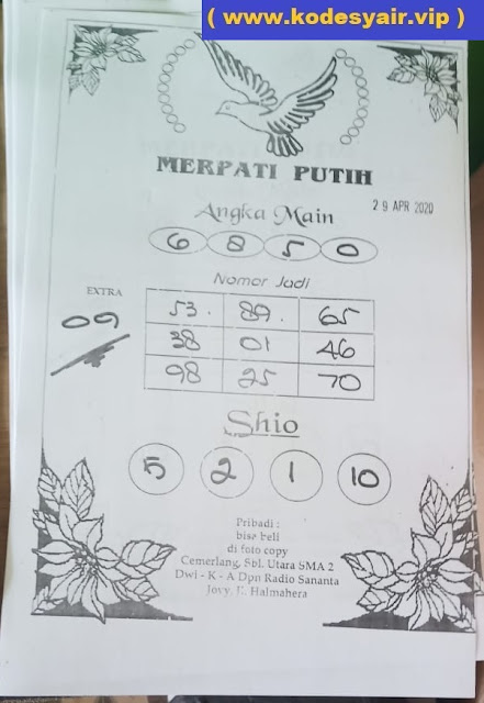 Kode Syair Hk Rabu 29 April 2020