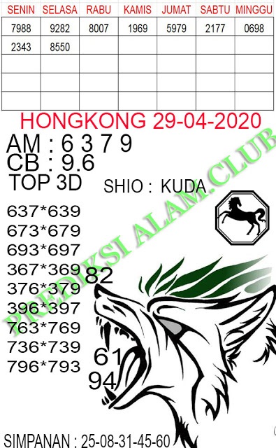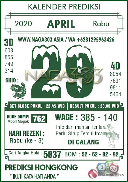 Prediksi hk hari ini 29 April 2020