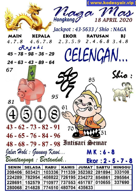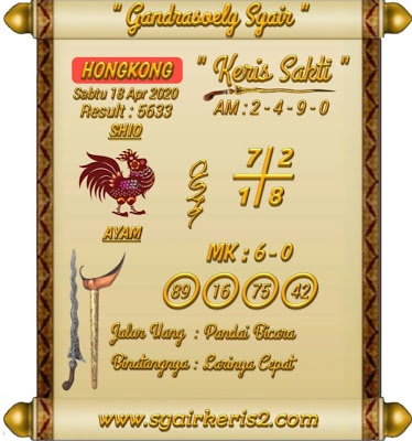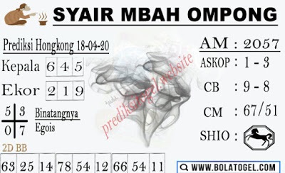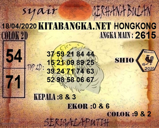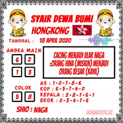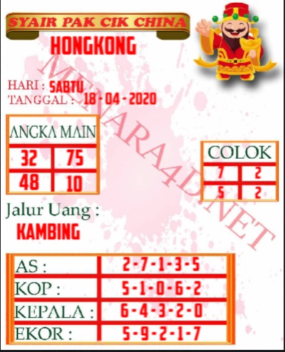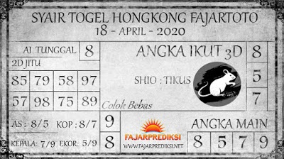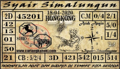 Kode Syair Hk Sabtu 18 April 2020 meliputi forum syair Hongkong serta prediksi togel hk dan di lengkapi juga dengan data pengeluaran Hk 2020 .