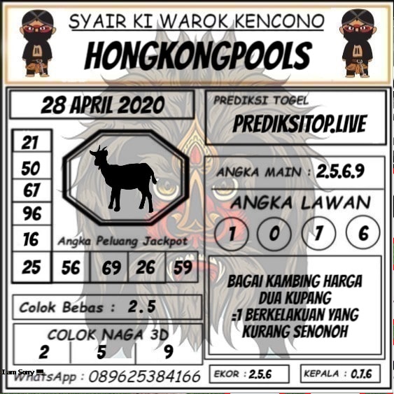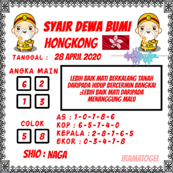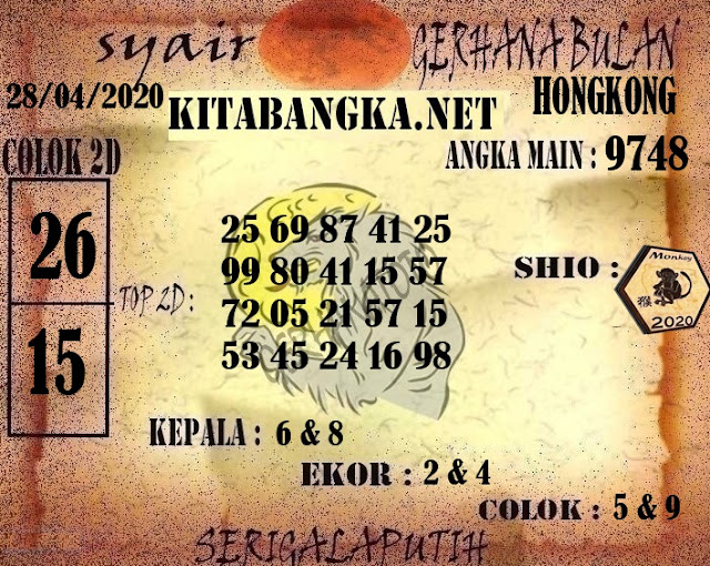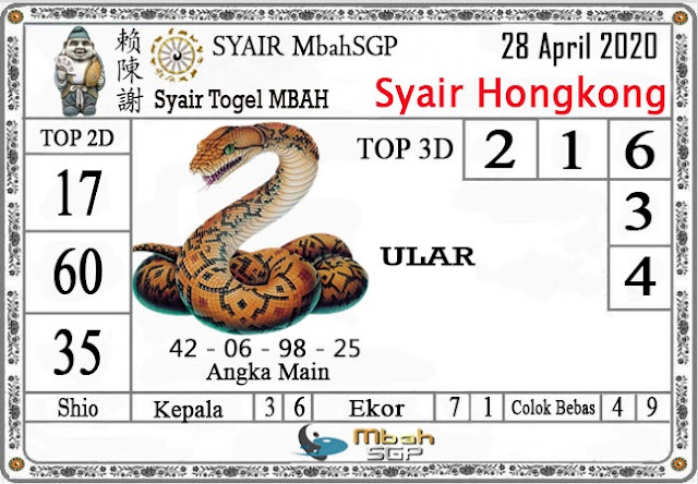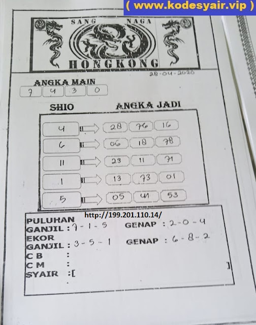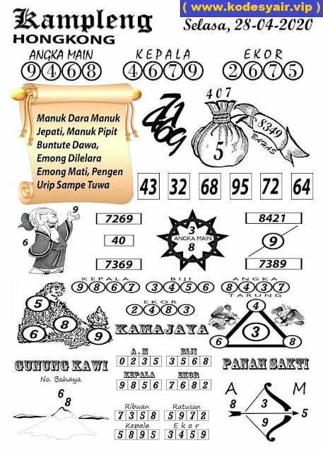Kode Syair Hk selasa 28 April 2020 meliputi forum syair Hongkong , paito warna hk serta prediksi togel hk dan di lengkapi juga dengan data pengeluaran Hk 2020 .