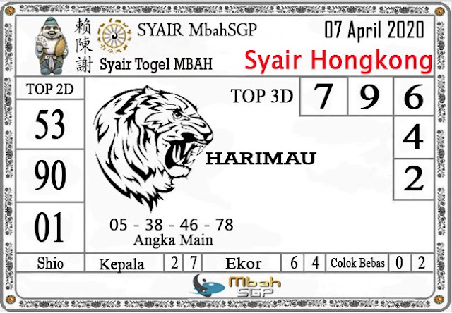 Kode Syair Hk Selasa 7 April 2020 meliputi prediksi togel hk serta forum syair Hongkong di lengkapi juga dengan data pengeluaran Hk 2020 .