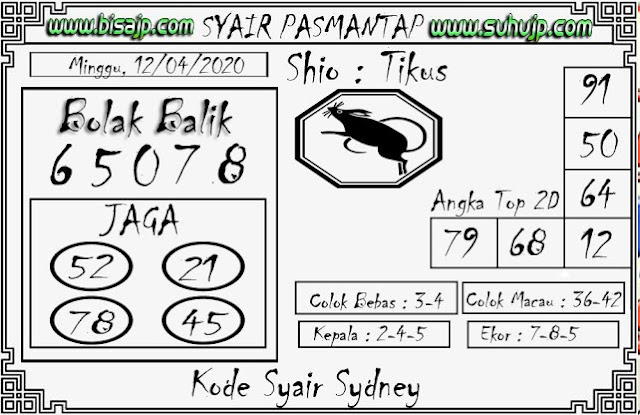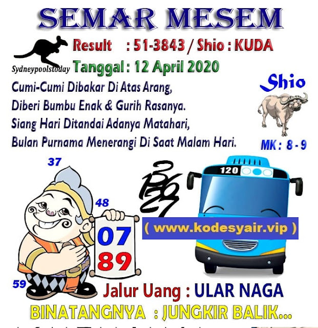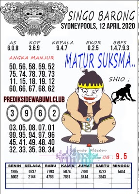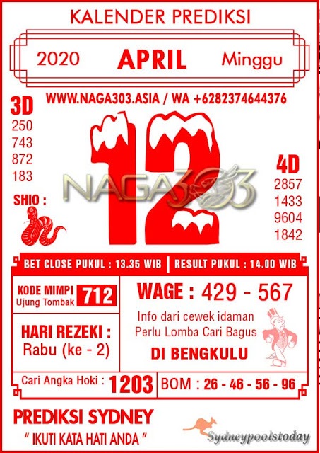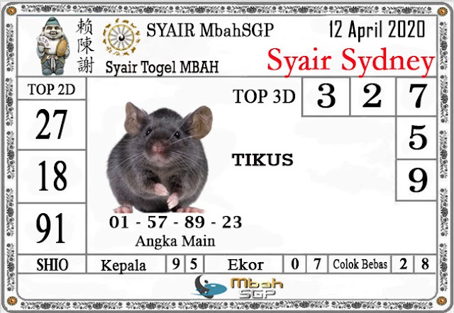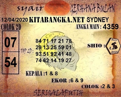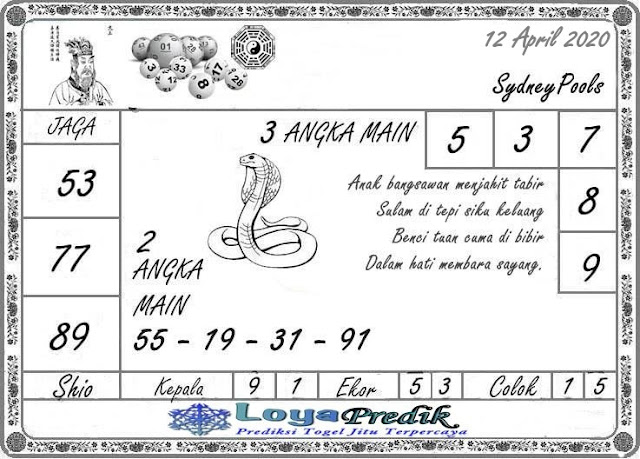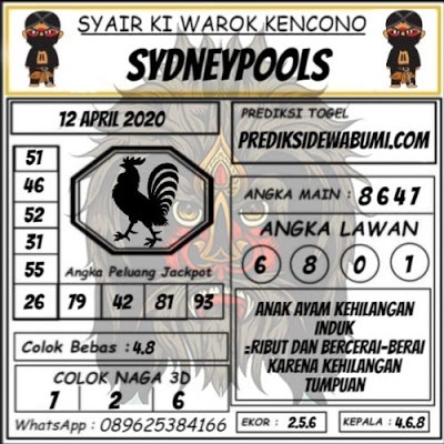 Kode Syair Sdy Minggu 12 April 2020 meliputi prediksi togel sidney serta forum syair sydney di lengkapi juga dengan data pengeluaran sdy 2020 .
