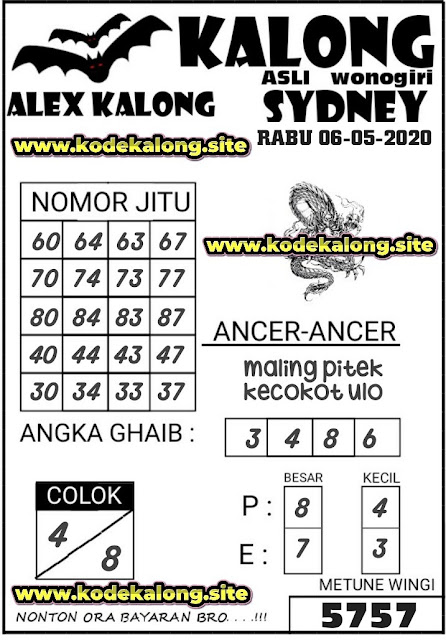 Kode Syair sdy Rabu 6 Mei 2020 meliputi forum syair sydney , paito warna sdy serta prediksi togel sidney dan di lengkapi juga dengan data pengeluaran sdy 2020 .