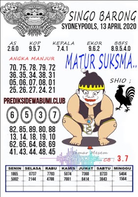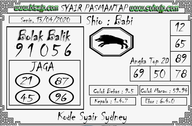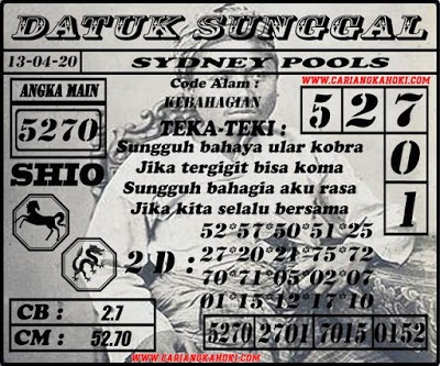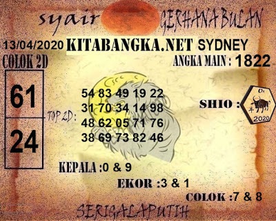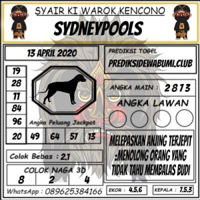 Kode Syair Sdy Senin 13 April 2020 meliputi prediksi togel sidney serta forum syair sydney di lengkapi juga dengan data pengeluaran sdy 2020 .