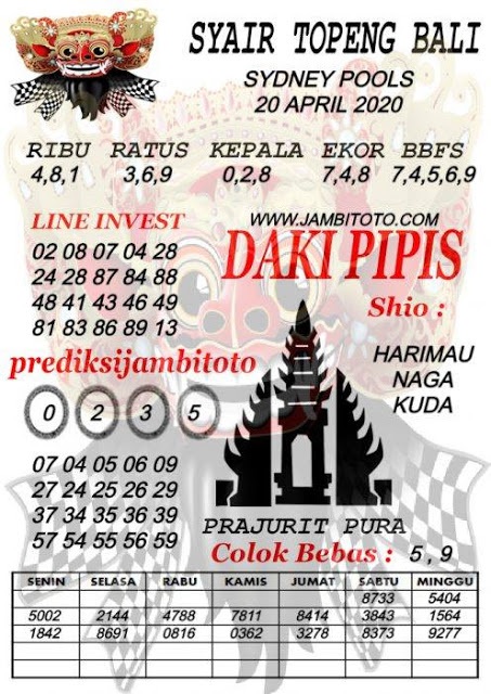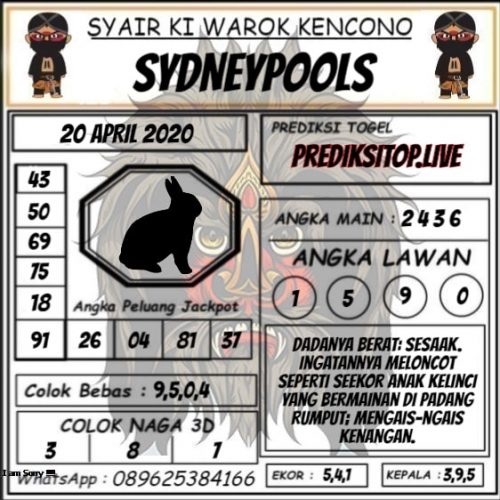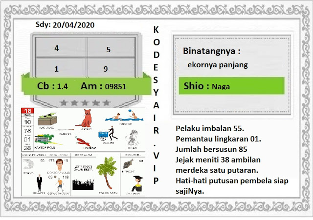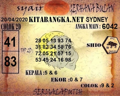 Kode Syair sdy senin 20 April 2020 meliputi forum syair sydney , paito warna sdy serta prediksi togel sidney dan di lengkapi juga dengan data pengeluaran sdy 2020 .