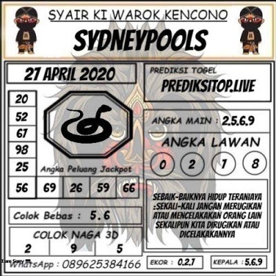Kode Syair sdy Senin 27 April 2020 meliputi forum syair sydney , paito warna sdy serta prediksi togel sidney dan di lengkapi juga dengan data pengeluaran sdy 2020 .