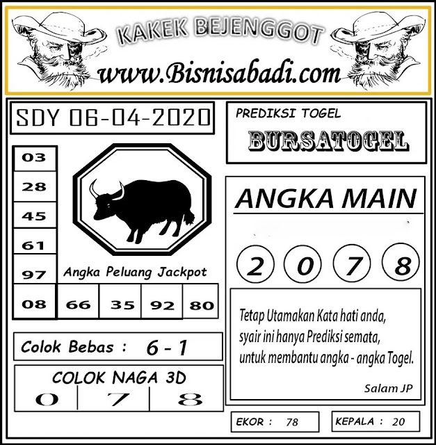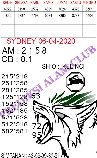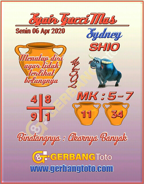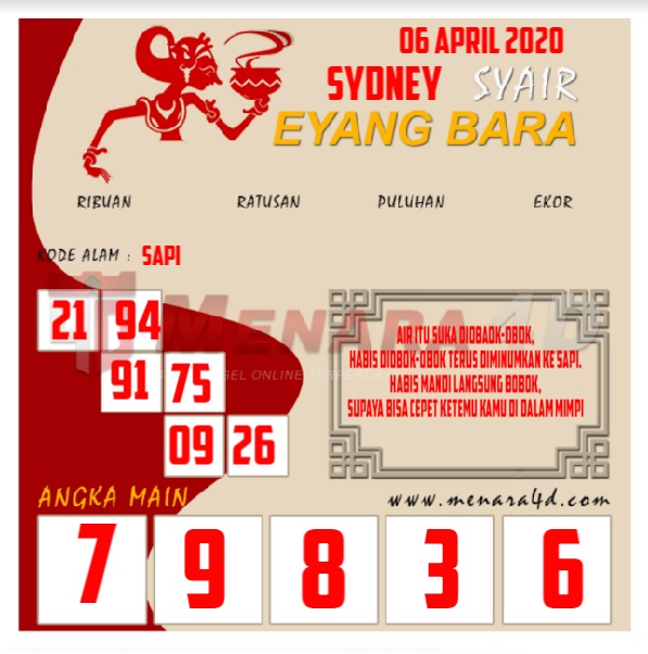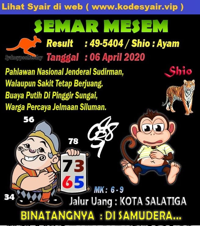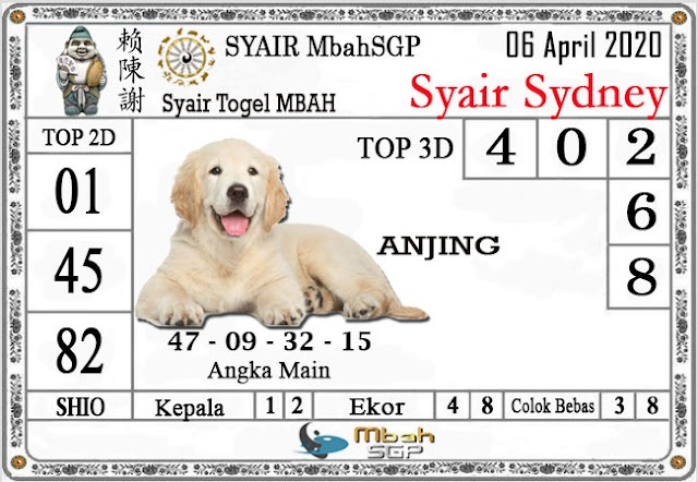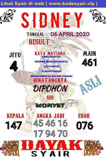 Kode Syair Sdy Senin 6 April 2020 meliputi prediksi togel sidney serta forum syair sydney di lengkapi juga dengan data pengeluaran sdy 2020 .