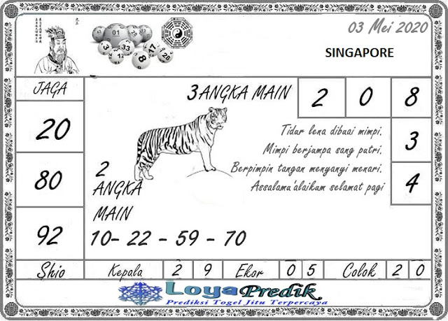Kode Syair Sgp Minggu 3 Mei 2020 meliputi forum syair singapore, paito warna sgp serta prediksi togel singapura dan di lengkapi juga dengan data pengeluaran sgp 2020 .