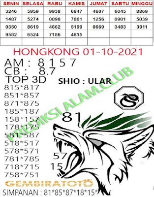 Kode Syair Hk Jumat 1 Oktober 2021 , meliputi forum syair Hongkong , Bocoran hk serta prediksi togel hk dan di lengkapi juga dengan data pengeluaran Hk 2021 .