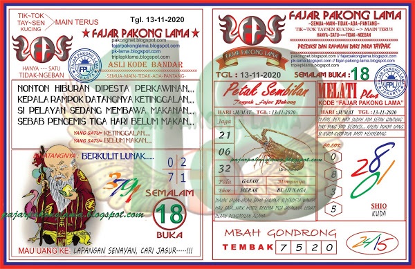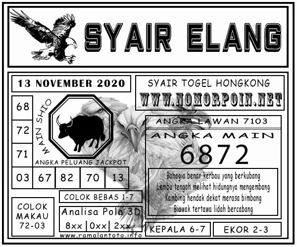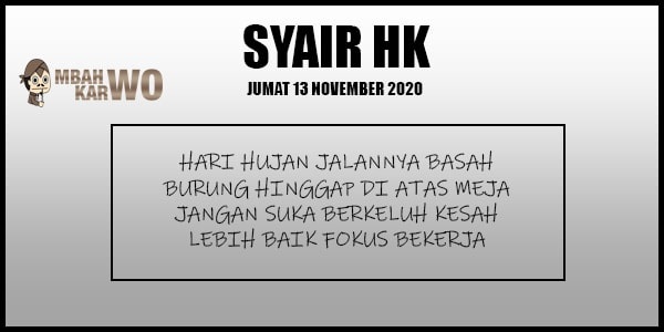 Kode Syair Hk Jumat 13 November 2020 meliputi forum syair Hongkong , paito warna hk serta prediksi togel hk dan di lengkapi juga dengan data pengeluaran Hk 2020 .
