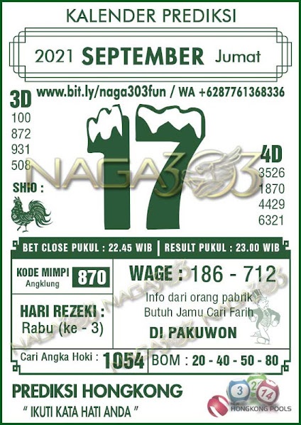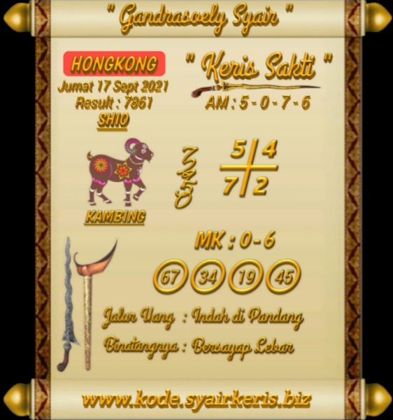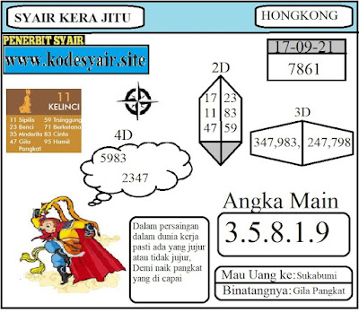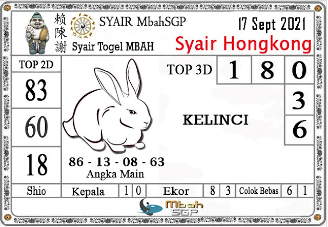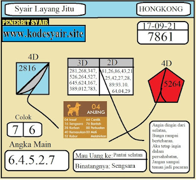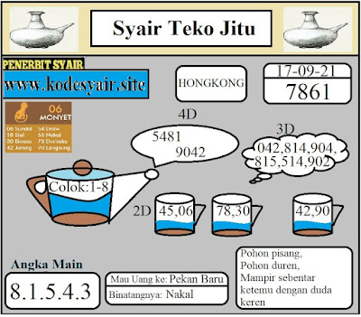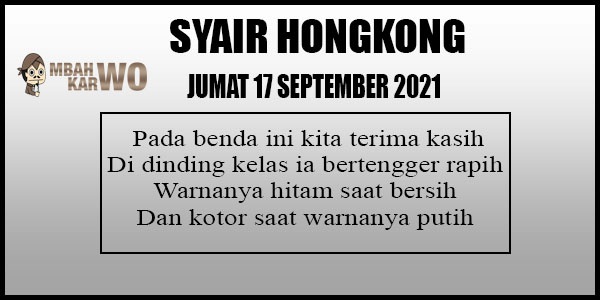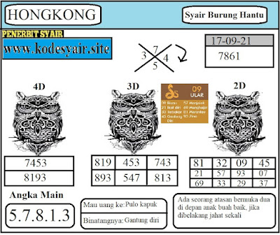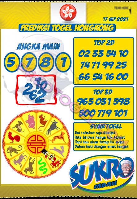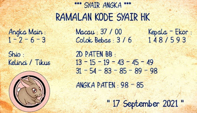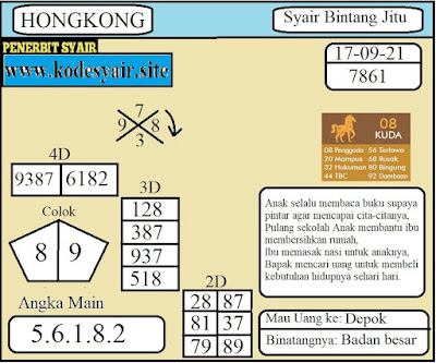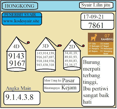 Kode Syair Hk Jumat 17 September 2021 , meliputi forum syair Hongkong , Bocoran hk serta prediksi togel hk dan di lengkapi juga dengan data pengeluaran Hk 2021 .