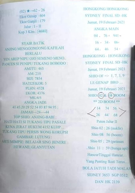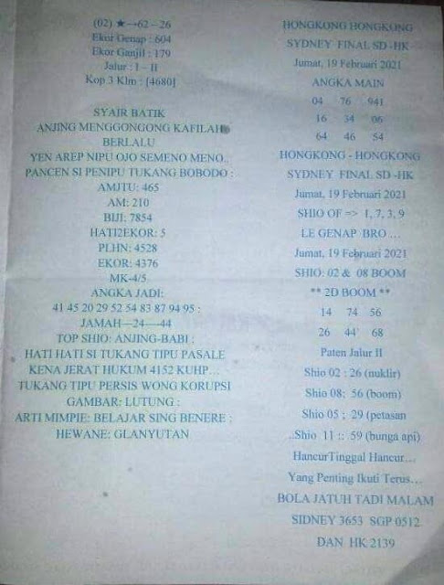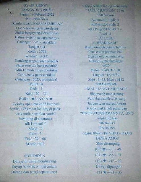Kode Syair Hk Jumat 19 Februari 2021 meliputi forum syair Hongkong , paito warna hk serta prediksi togel hk dan di lengkapi juga dengan data pengeluaran Hk 2020 .