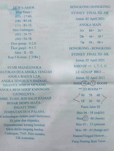Syair Hk Jumat 2 April 2021