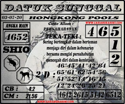 Kode Syair Hk Jumat 3 Juli 2020