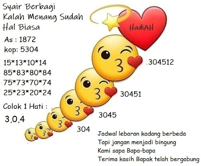 Dan lagi Apabila ada yang bertanya , Apa saja bocoran syair jitu yang ada pada forum syair ? dengan tegas jawabanya adalah hampir semua syair itu bagus. meskipun begitu apabila ada yang jitu itu tergantung bagaimana kita melihat gambar syair tersebut karena tidak ada prediksi syair yang selalu tembus .