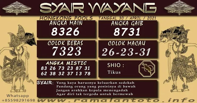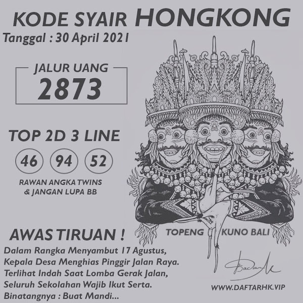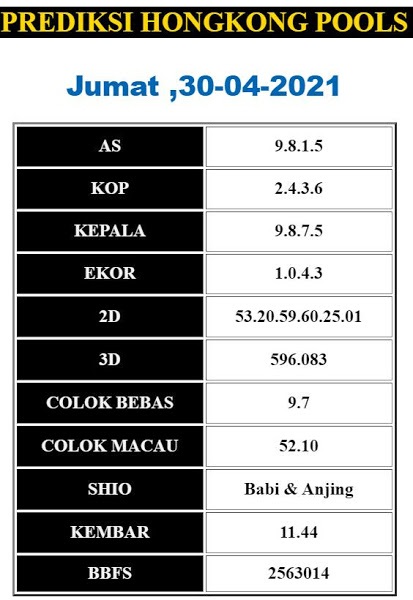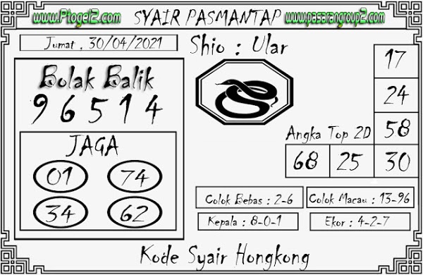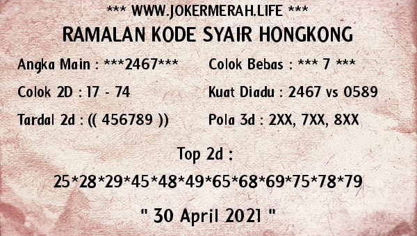 Kode Syair Hk Jumat 30 April 2021 , meliputi forum syair Hongkong , Bocoran hk serta prediksi togel hk dan di lengkapi juga dengan data pengeluaran Hk 2021 .