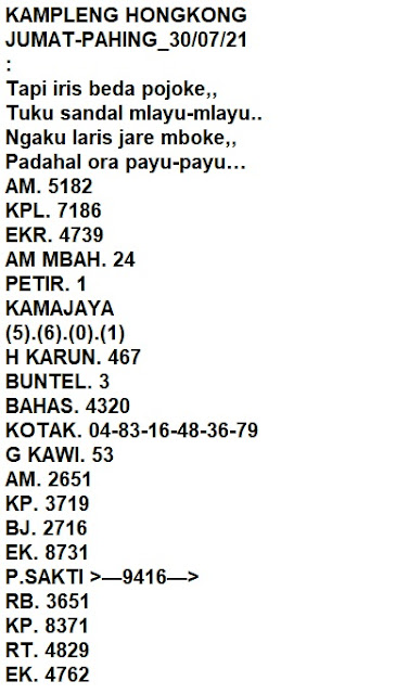 Kode Syair Hk Jumat 30 Juli 2021 , meliputi forum syair Hongkong , Bocoran hk serta prediksi togel hk dan di lengkapi juga dengan data pengeluaran Hk 2021 .
