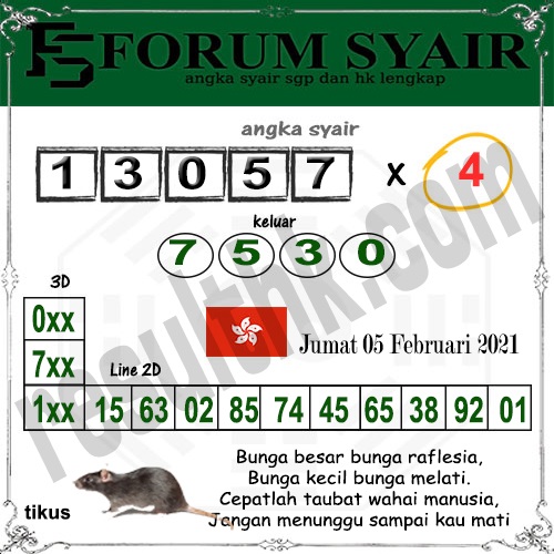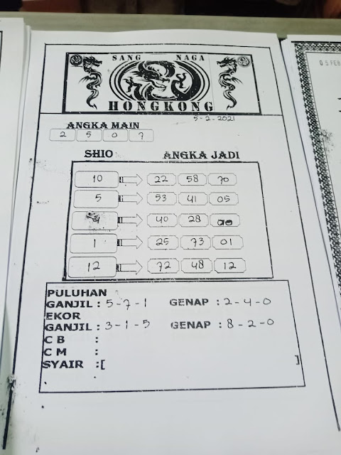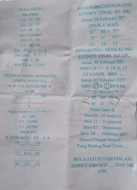 Kode Syair Hk Jumat 5 Februari 2021 meliputi forum syair Hongkong , paito warna hk serta prediksi togel hk dan di lengkapi juga dengan data pengeluaran Hk 2020 .