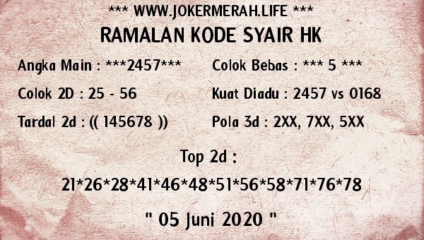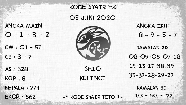 Kode Syair Hk Jumat 5 Juni 2020 meliputi forum syair Hongkong , paito warna hk serta prediksi togel hk dan di lengkapi juga dengan data pengeluaran Hk 2020 .