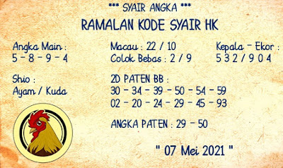 Kode Syair Hk Jumat 7 Mei 2021 , meliputi forum syair Hongkong , Bocoran hk serta prediksi togel hk dan di lengkapi juga dengan data pengeluaran Hk 2021 .