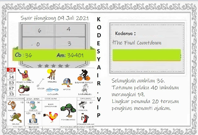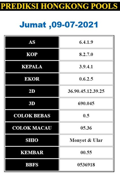 Kode Syair Hk Jumat 9 Juli 2021 , meliputi forum syair Hongkong , Bocoran hk serta prediksi togel hk dan di lengkapi juga dengan data pengeluaran Hk 2021 .