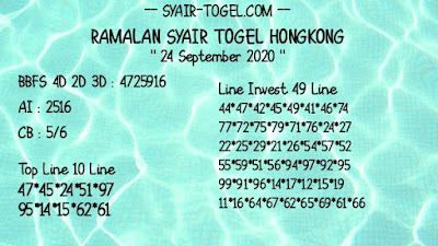 Kode Syair Hk Kamis 24 September 2020 meliputi forum syair Hongkong , paito warna hk serta prediksi togel hk dan di lengkapi juga dengan data pengeluaran Hk 2020 .