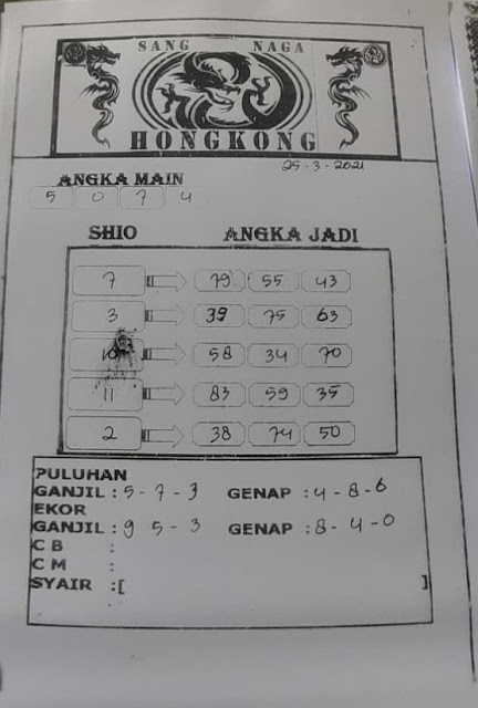 Syair Hk Rabu 24 Maret 2021