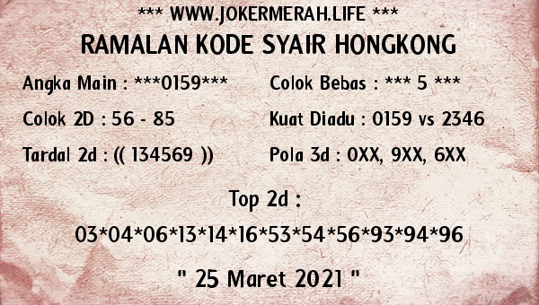 Syair Hk Kamis 25 Maret 2021