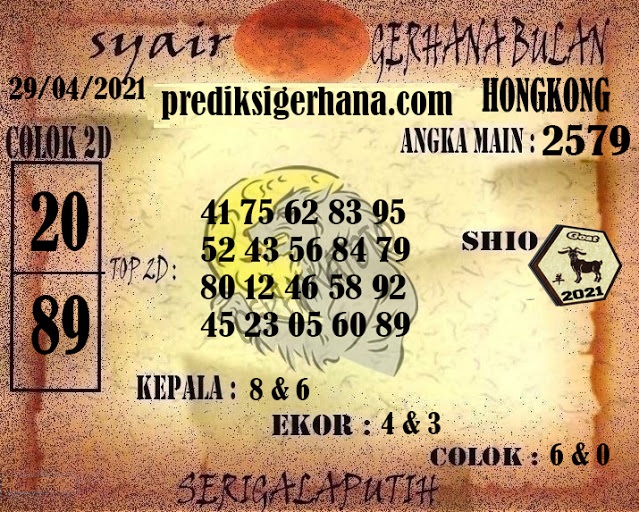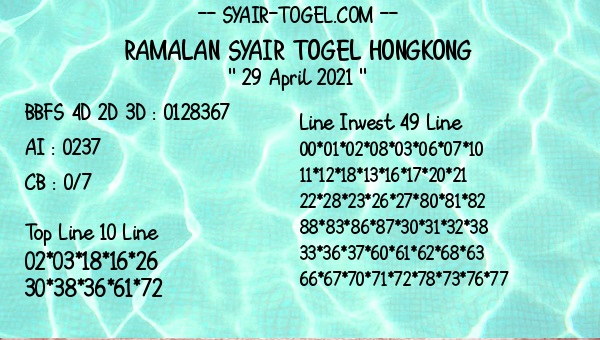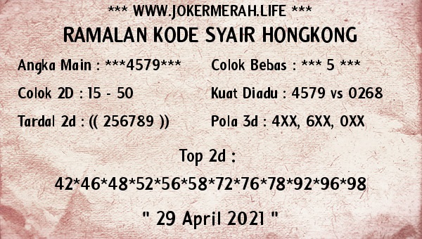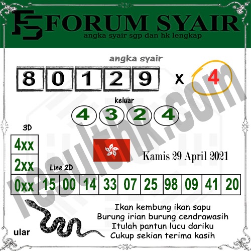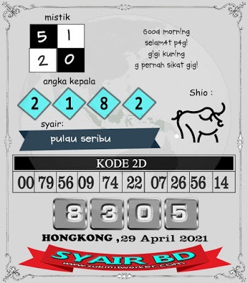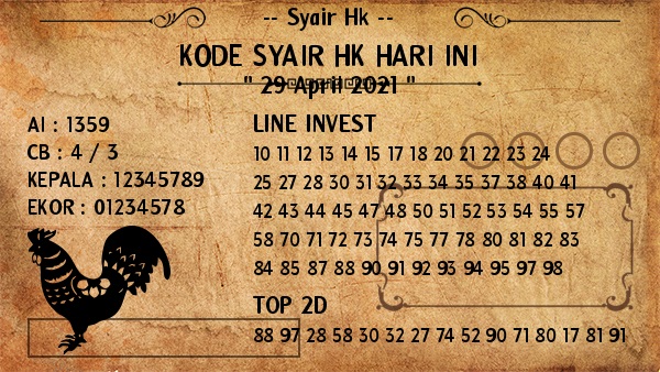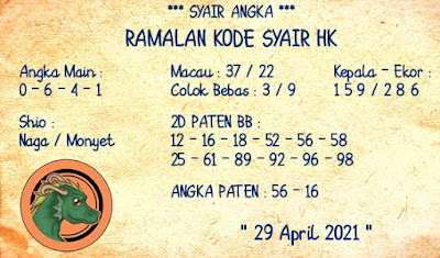 Kode Syair Hk Kamis 29 April 2021 , meliputi forum syair Hongkong , Bocoran hk serta prediksi togel hk dan di lengkapi juga dengan data pengeluaran Hk 2021 .