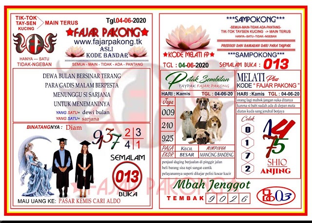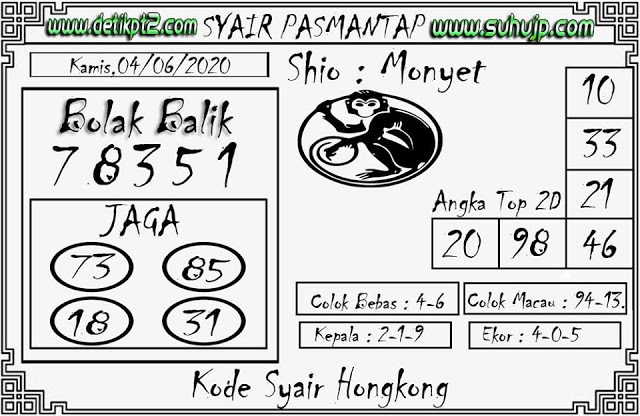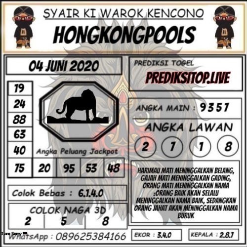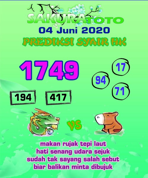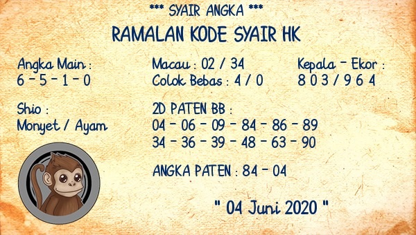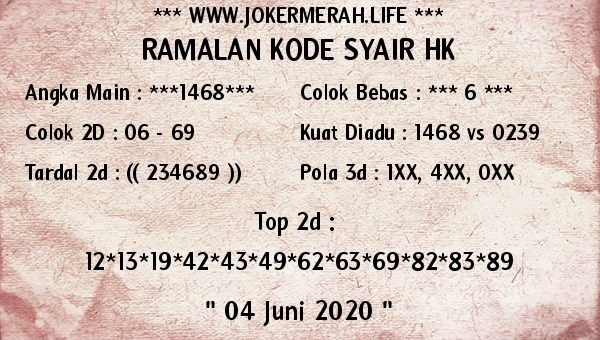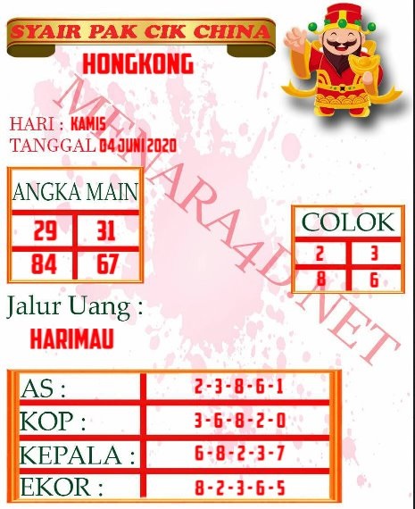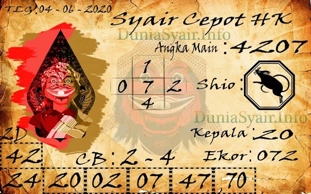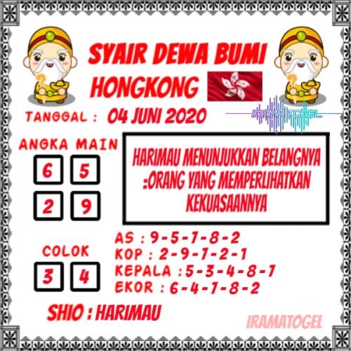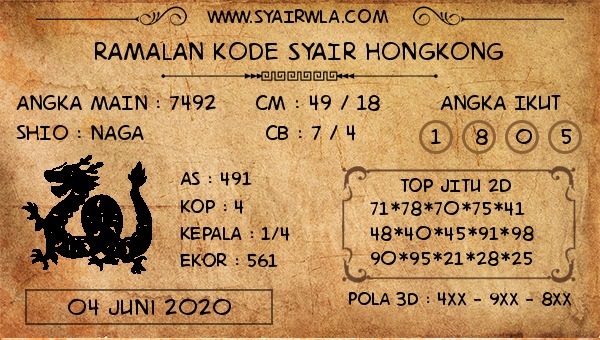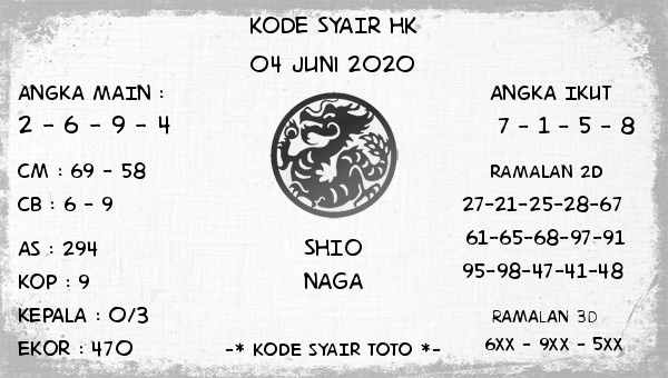 Kode Syair Hk Kamis 4 Juni 2020 meliputi forum syair Hongkong , paito warna hk serta prediksi togel hk dan di lengkapi juga dengan data pengeluaran Hk 2020 .