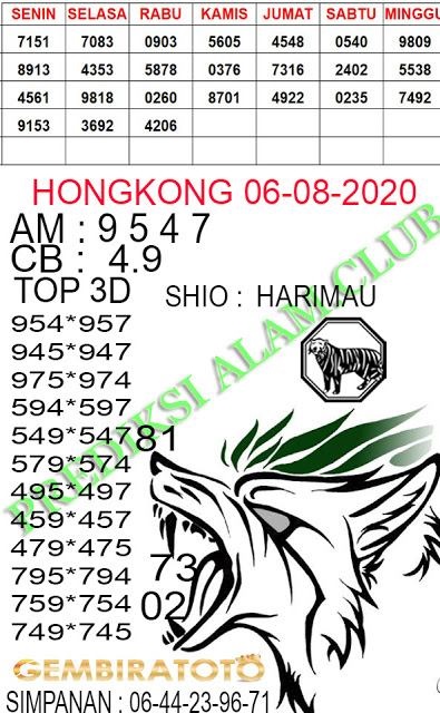 Prediksi Hk Kamis 6 Agustus 2020