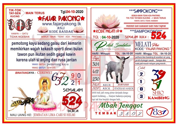 Prediksi Syair Hk Minggu 04 Oktober 2020