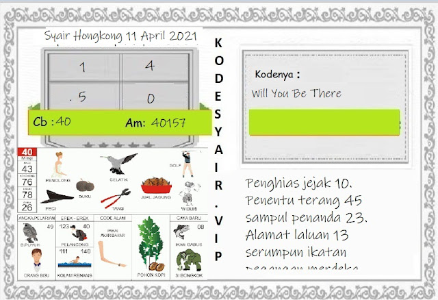 Kode Syair Hk Minggu 11 April 2021, meliputi forum syair Hongkong , Bocoran hk serta prediksi togel hk dan di lengkapi juga dengan data pengeluaran Hk 2021 .