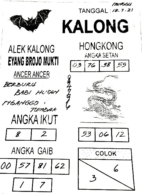 Bocoran Hongkong hari ini 18 7 2021