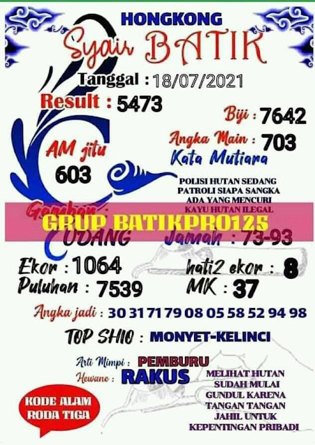 Syair Hk Minggu 18 Juli 2021