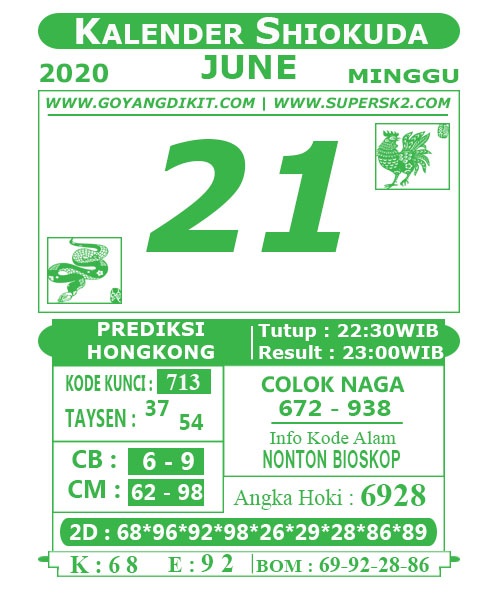 Kode Syair Hk Minggu 21 Juni 2020 meliputi forum syair Hongkong , paito warna hk serta prediksi togel hk dan di lengkapi juga dengan data pengeluaran Hk 2020 .
