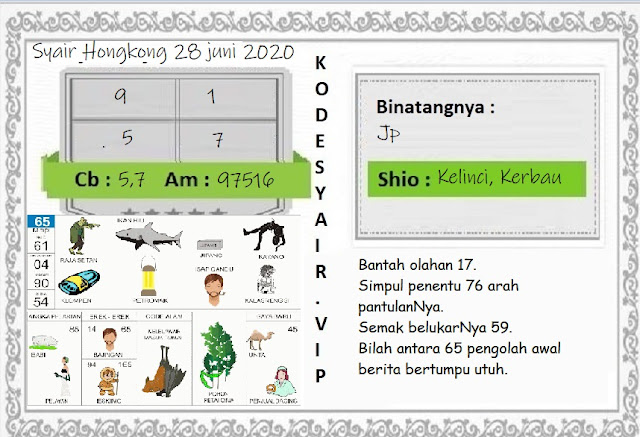 Kode Syair Hk Minggu 28 Juni 2020 meliputi forum syair Hongkong , paito warna hk serta prediksi togel hk dan di lengkapi juga dengan data pengeluaran Hk 2020 .