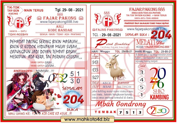 Bocoran Hongkong hari ini 29 8 2021