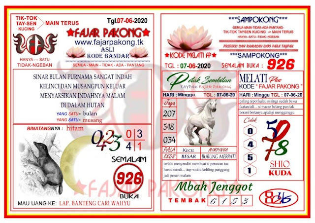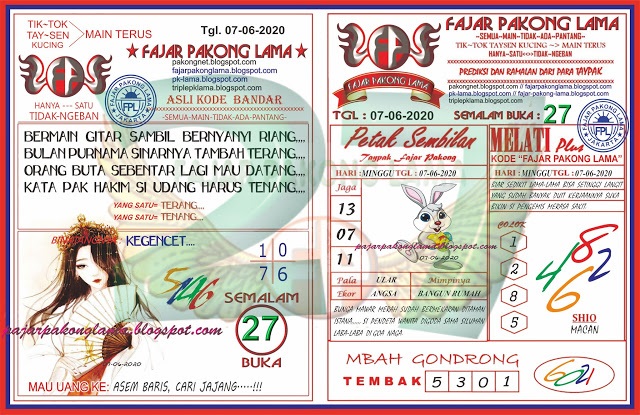 KUMPULAN SYAIR HK 7 Juni 2020