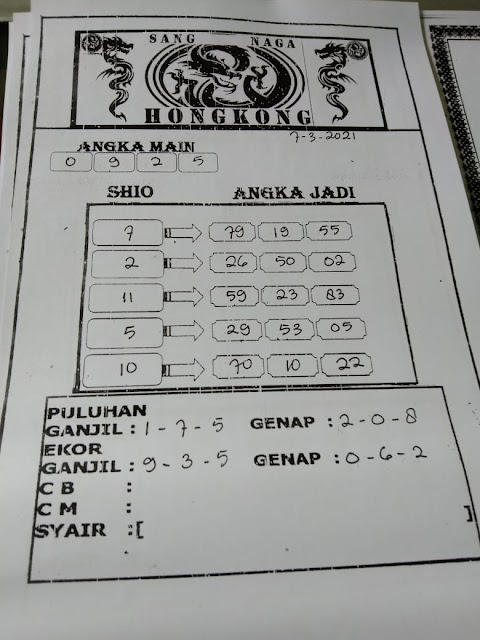 Syair Hk Minggu 7 Maret 2021