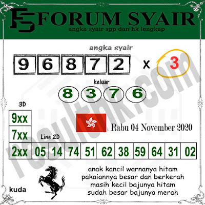 Kode Syair Hk Rabu 04 November 2020 meliputi forum syair Hongkong , paito warna hk serta prediksi togel hk dan di lengkapi juga dengan data pengeluaran Hk 2020 .
