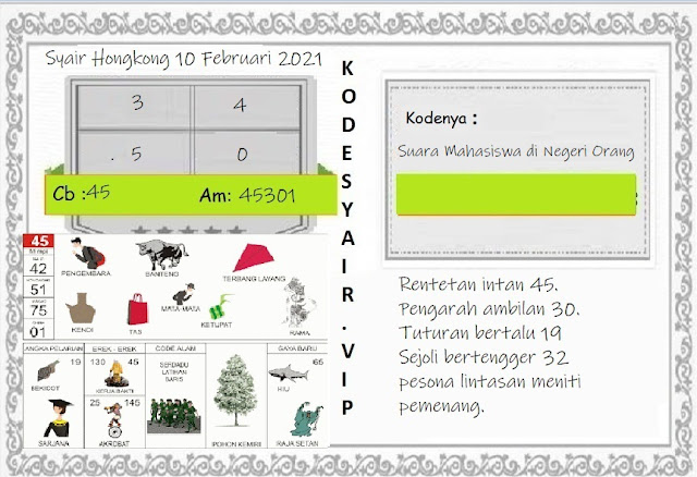 Kode Syair Hk Rabu 10 Februari 2021 meliputi forum syair Hongkong , paito warna hk serta prediksi togel hk dan di lengkapi juga dengan data pengeluaran Hk 2020 .