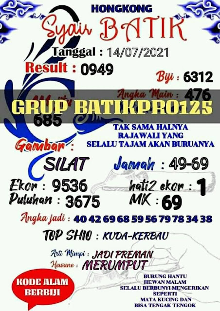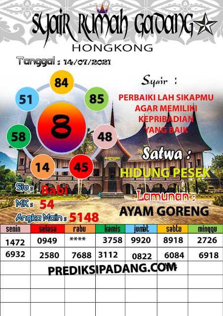 Kode Syair Hk Rabu 14 Juli 2021 , meliputi forum syair Hongkong , Bocoran hk serta prediksi togel hk dan di lengkapi juga dengan data pengeluaran Hk 2021 .