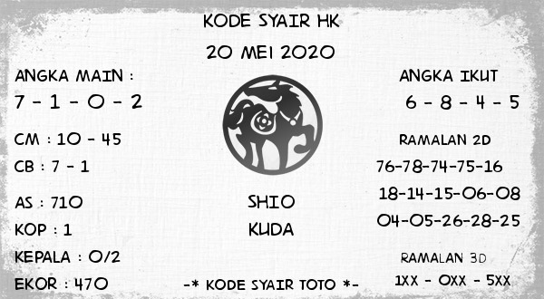 Kode Syair Hk Rabu 20 Mei 2020