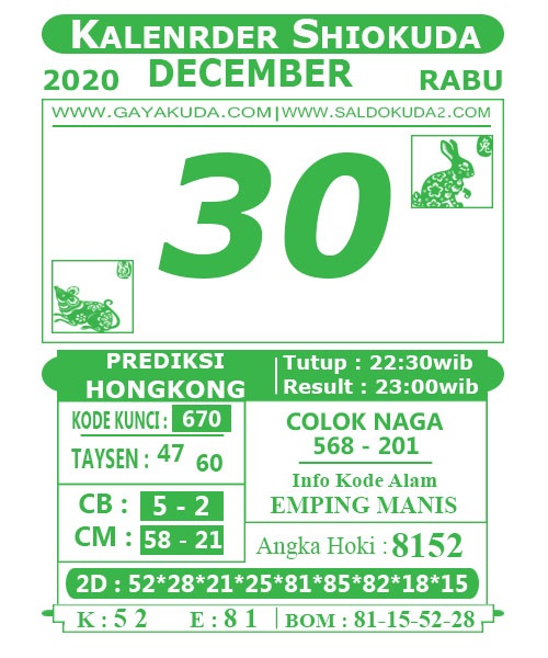 Kode Syair Hk Rabu 30 Desember 2020 meliputi forum syair Hongkong , paito warna hk serta prediksi togel hk dan di lengkapi juga dengan data pengeluaran Hk 2020 .